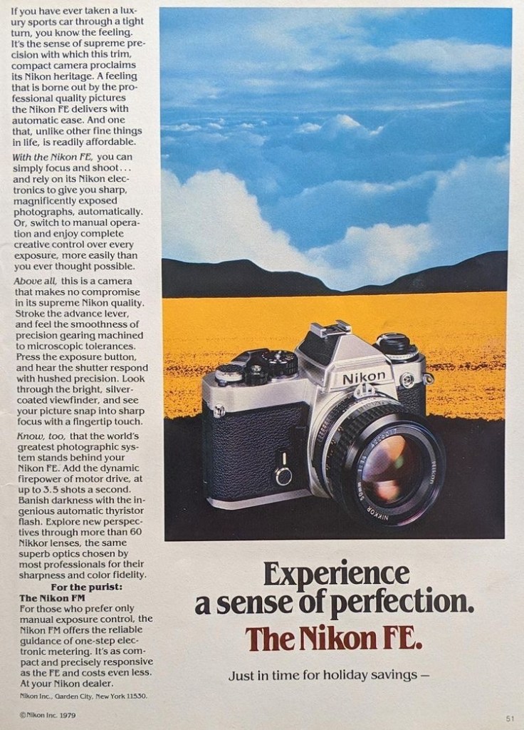 ก่อนอื่นต้องขอเล่าประวัติกล้องตัวนี้กันก่อน กล้องnikon fe ตัวนี้วางตลาดในปี ค.ศ.1978 เป็นรุ่นที่ออกมาแทนที่ Nikkormat EL2 โดยเจ้าFEเนี่ยเป็นกล้องรุ่นกลางวางตลาดสำหรับกลุ่มช่างภาพที่ถ่ายภาพจริงจังแต่ไม่ไม่ใช่มือโปร มีรุ่นที่ออกวางจำหน่ายไล่ๆก่อนหน้าอย่าง nikon FM ที่ออกมาก่อนหน้า 1 ปี